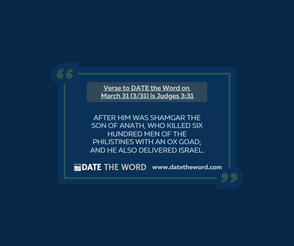 | Our verse to DATE the Word on March 31 (3/31) is Judges 3:31 |